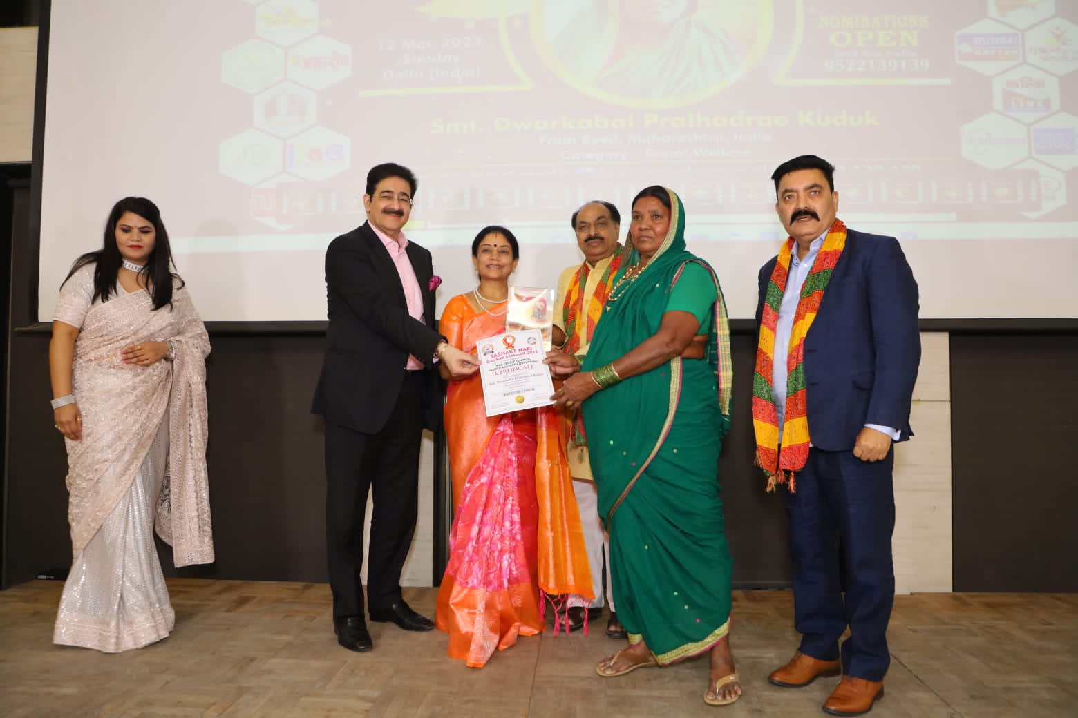 बीड जिल्हा, शिरुर (कासार ) तितरवणी गाव येथील श्रीमती द्वारकाबाई प्रल्हादराव कुडूक “constitution club of India” दिल्ली येथे ” सशक्त नारी गौरव पुरस्कार 2023″ ने नुकतेच गौरविण्यात आले. श्रीमती द्वारकाबाई प्रल्हादराव कुडूक यांना त्यांची सारनाथ संस्थेच्या, तसेच भीमाई, रामाई, विश्वाकर्मा महिला बचत गटांच्या माध्यमातुन पुणे अणि बीडमध्ये समाजात शिक्षण, महिला सबलीकरण, अशा विविध क्षेत्रात उत्कृष्ठ समजाउपयुक्त काम केल्याने तसेच समाजामध्ये नैतिक नीतिमूल्ये जोपासून उत्कृष्ट कामगिरी केल्याबद्दल, श्रीमती द्वारकाबाई प्रल्हादराव कुडूक यांना ” सशक्त नारी गौरव पुरस्कार 2023″ हा महत्त्वाचा पुरस्कार मिळाला आहे, देशात विविध क्षेत्रात काम करणाऱ्या नामवंत व्यक्तींच्या कार्याची दखल घेऊन विश्व भ्रष्टाचार विरोध संगठन दिल्ली यांच्या द्वारे या पुरस्कार सोहळ्याचे आयोजन करण्यात आले होते व देशातील विविध मान्यवरांच्या कामाचा आढावा घेऊन हा पुरस्कार देऊन सन्मानित करण्यात आले. यावर्षी हा सोहळा 12 मार्च रोजी “constitution blub of India” दिल्ली या ऐतिहासिक स्थळी जेथे डॉ बाबासाहेब आंबेडकर, पंडित जवाहरलाल नेहरू अणि ईतर जण यांनी भारताची राज्यघटने संदर्भात कार्य पार पाडले येथे आयोजित करण्यात आला होता. यामध्ये भरतातील जवळपास 25 जणांचा सन्मान करण्यात आला. या वर्षी हा अवॉर्ड सोहळा पदश्री डॉ चंद्रकांत पाडव, रेल्वे बोर्डाचे चेअरमन रमेश चंद्ररत्ना, डायरेक्टर नौयडा फिल्म city संदीप मारवा, यांच्या हस्ते पुरस्कार देण्यात आला तसेच महाराष्ट्राचे माजी कॅबिनेट मंत्री महादेव जानकर व ईतर मान्यवर या कार्यक्रमाला प्रमुख पाहुणे म्हणून उपस्थित होते दिल्ली येथे हा मानाचा पुरस्कार मिळाल्याबद्दल श्रीमती द्वारकाबाई प्रल्हाद कुडूक यांचे सर्व स्तरातून अभिनंदन होत आहे