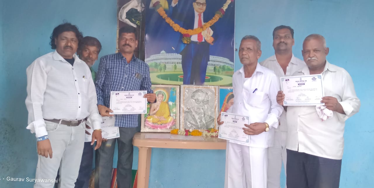 गेवराई प्रतिनीधी: दिः २८ आडपिंपरी येथे शुक्रवार दिनांक 28/04/2023 विश्वरत्न डॉ बाबासाहेब आंबेडकर यांची 132 वी जयंती उत्साहात साजरी सकाळी 10.00वाजता पंचशील ध्वज वंदन तसेच त्रिसरण पंचशील व बुद्ध वंदना घेऊन सायंकाळी 5.00 वाजता विश्वरत्न डॉ बाबासाहेब आंबेडकर यांच्या प्रतिमेची डि जे लावून भव्य मिरवणूक काढण्यात आली नंतर आलेल्या मान्यवरांचे स्वागत केले त्यात प्रामुख्याने भिमयौद्धा धम्मपाल कांडेकर पत्रकार सलमान शेख गणेश बोरुडे आम्रपाल बोरूडे राजेंद्र बोरुडे सोनाजी बोरुडे विनोद बोरुडे गोरक्ष बोरुडे शांतीक बोरुडे आकाश बोरुडे सागर खंडागळे माऊली रसाळ रवी चंदनशिव तसेच आडपिंपरी येथील सुर्यवंशी परिवार खंडागळे परिवार मगर परिवार बोरुडे परिवार खरात परिवार सदाफुले परिवारातील सर्व सदस्यांचा आंबेडकरी चळवळीतील योगदानाबद्दल आंबेडकरी यौद्धा म्हणून महाराष्ट्राचे सुप्रसिद्ध गायक अनिरुद्ध सूर्यवंशी यांच्या हस्ते सन्मान पत्र देऊन गौरविण्यात आले त्या नंतर मयुरी सूर्यवंशी (समता सैनिक दल) हिने सर्वांना भिम प्रतिज्ञा दिली तसेच प्रतिक्षा सुर्यवंशी राजरत्न सुर्यवंशी प्रेम सिरसाठ प्रगती सुर्यवंशी प्रनिकेत सुर्यवंशी या छोट्या मुलांची भाषणं व भिमगिते झाली प्रविण सिरसाठ याने रैप गायन केले कार्यक्रमाचे सूत्रसंचालन अनिरुद्ध सूर्यवंशी यांनी केले कार्यक्रम यशस्वी करण्यासाठी यामध्ये सर्व जयंती कमिटी सदस्य प्रामुख्याने राहूल खंडागळे बाळू सुर्यवंशी सुभाष सुर्यवंशी सिद्धार्थ सुर्यवंशी दिलिप सुर्यवंशी सुनील सुर्यवंशी शाहूराव सुर्यवंशी छबन सूर्यवंशी अशोक सुर्यवंशी लखण सुर्यवंशी मोहन सुर्यवंशी बाबासाहेब सुर्यवंशी आनंद सुर्यवंशी बाबूराव सुर्यवंशी अरूण सुर्यवंशी भगवान सुर्यवंशी विठ्ठल सुर्यवंशी बबन मगर प्रेम सिरसाठ संदिप सुर्यवंशी संजय सुर्यवंशी बापू सुर्यवंशी ससेचं सर्व बौद्ध ऊपासक व ऊपासिका यांनी महत्त्वाची भूमिका बजावली तद्नंतर जेवणाचा कार्यक्रम झालाया कार्यक्रमाला गावचे सरपंच गोवर्धन घोडके उपसरपंच तसेच ग्रामपंचायत सदस्य व सर्व ग्रामस्थ उपस्थित होते