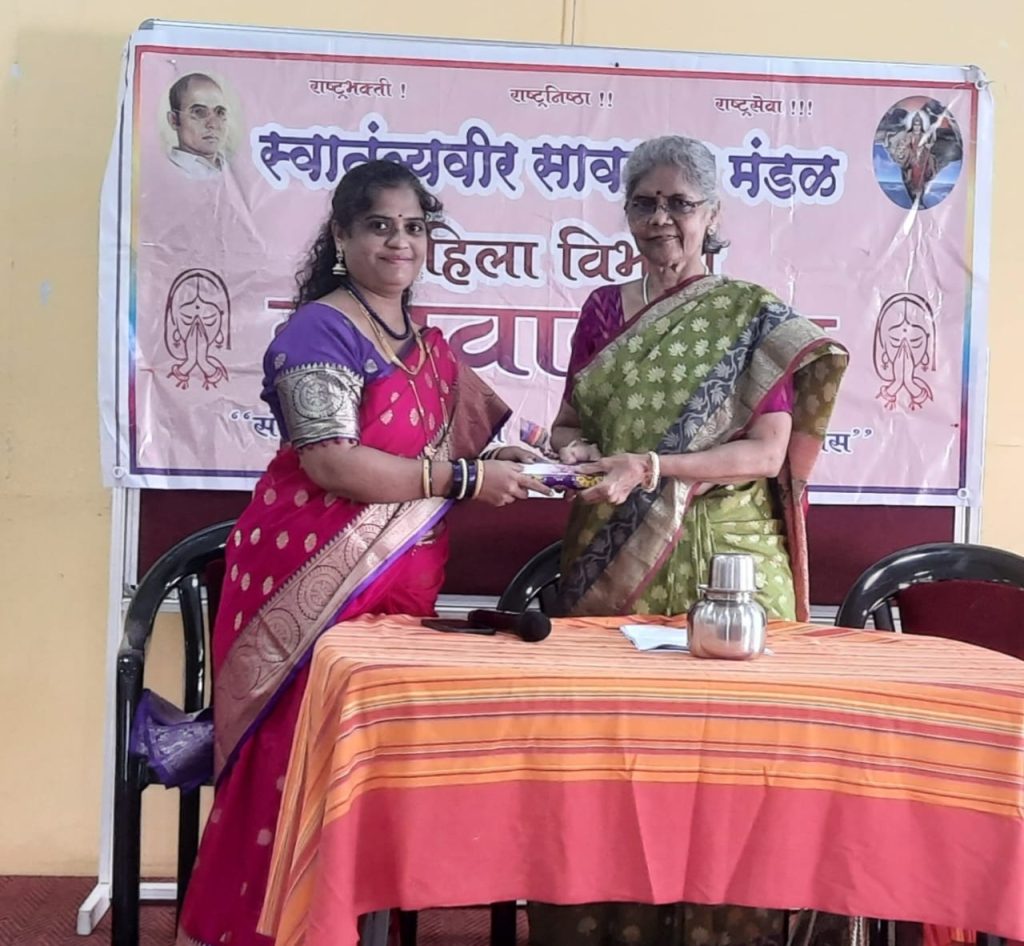 निगडी,प्राधिकरण-(प्रतिनिधी-बाबू डिसोजा कुमठेकर) बुधवार दि.६ सप्टेंबर २०२३ रोजी स्वातंत्र्यवीर सावरकर मंडळ महिला विभागतर्फे श्रीकृष्ण जन्माष्टमीचे औचित्य साधून ” रासलीला ” या विषयावर श्रीमती संध्या कोल्हटकर यांचा अध्यात्मिक कार्यक्रम कॅप्टन कदम सभागृह येथे झाला.