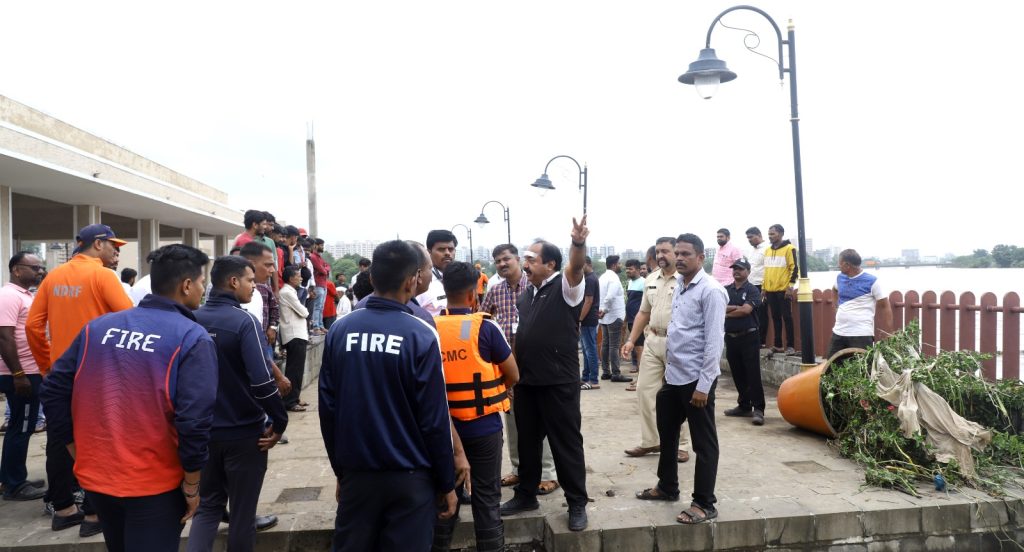 दरम्यान, आज राष्ट्रीय आपत्ती प्रतिसाद दलाच्या पथकाने आयुक्त शेखर सिंह यांची महापालिका मुख्यालयात भेट घेतली. यावेळी अतिरिक्त आयुक्त चंद्रकांत इंदलकर, मुख्य सुरक्षा अधिकारी उदय जरांडे, मुख्य आपत्ती व्यवस्थापन अधिकारी ओमप्रकाश बहिवाल, विशेष अधिकारी किरण गायकवाड आदी उपस्थित होते. शहरातील आपत्कालीन परिस्थितीचा आढावा घेवून करावयाच्या उपाययोजनांबाबत यावेळी चर्चा करण्यात आली. आपत्कालीन परिस्थिती हाताळण्यासाठी महापालिकेच्या अग्निशमन दलासह विविध विभागांकडे असलेली उपकरणे आणि साधन सामग्री यामध्ये आणखी कोणत्या अत्याधुनिक उपकरणांची आवश्यकता असावी याबाबत उभयतांमध्ये सविस्तर चर्चा झाली. शहरातील आपत्कालीन परिस्थिती हाताळण्यासाठी राष्ट्रीय आपत्ती प्रतिसाद दलाच्या २५ जवानांची तुकडी शहरात दाखल झाली असून विविध ठिकाणी मदतकार्य करण्यासाठी त्यांना पाचारण करण्यात येत आहे.